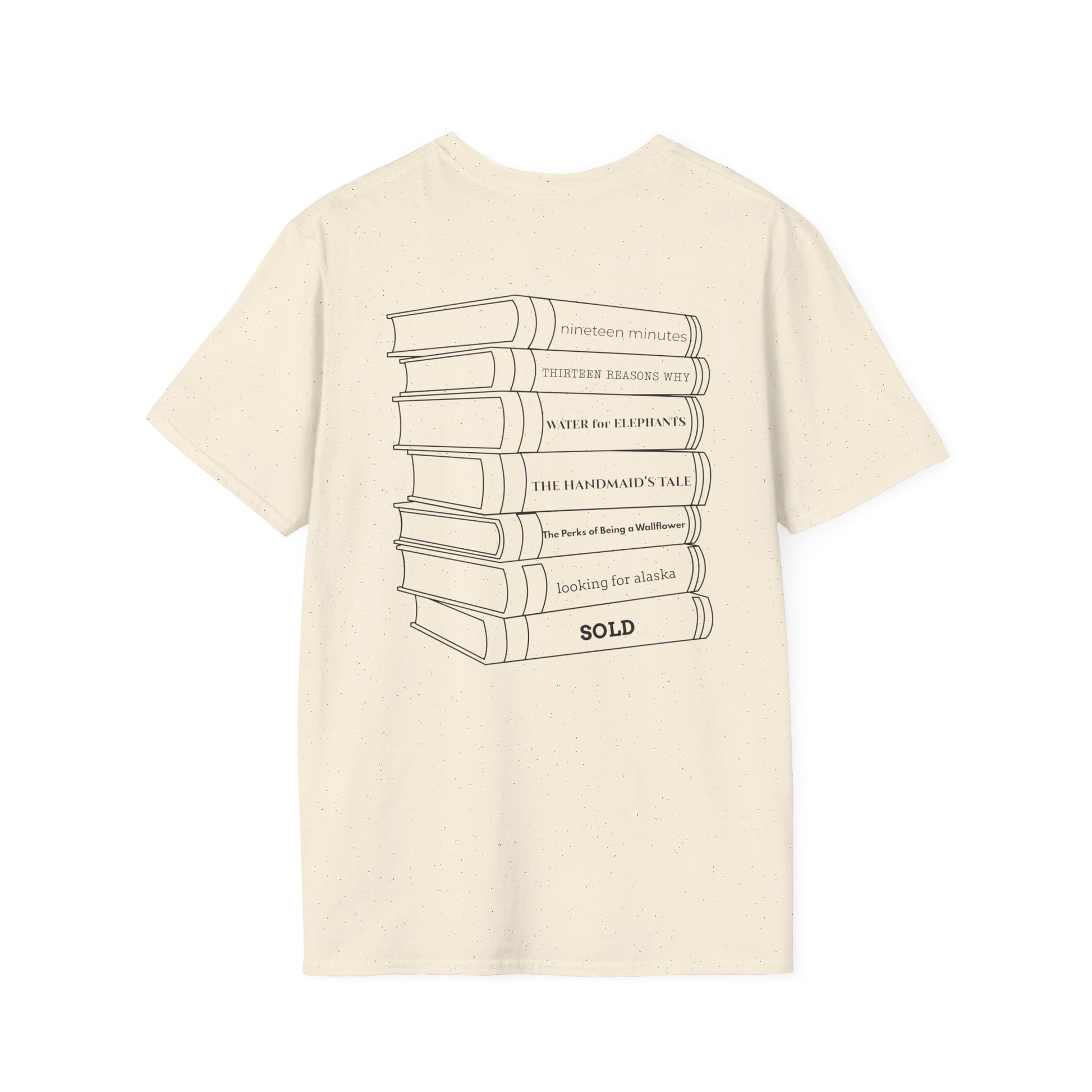 - Features titles of banned books on the back and 'I read banned books' on the front