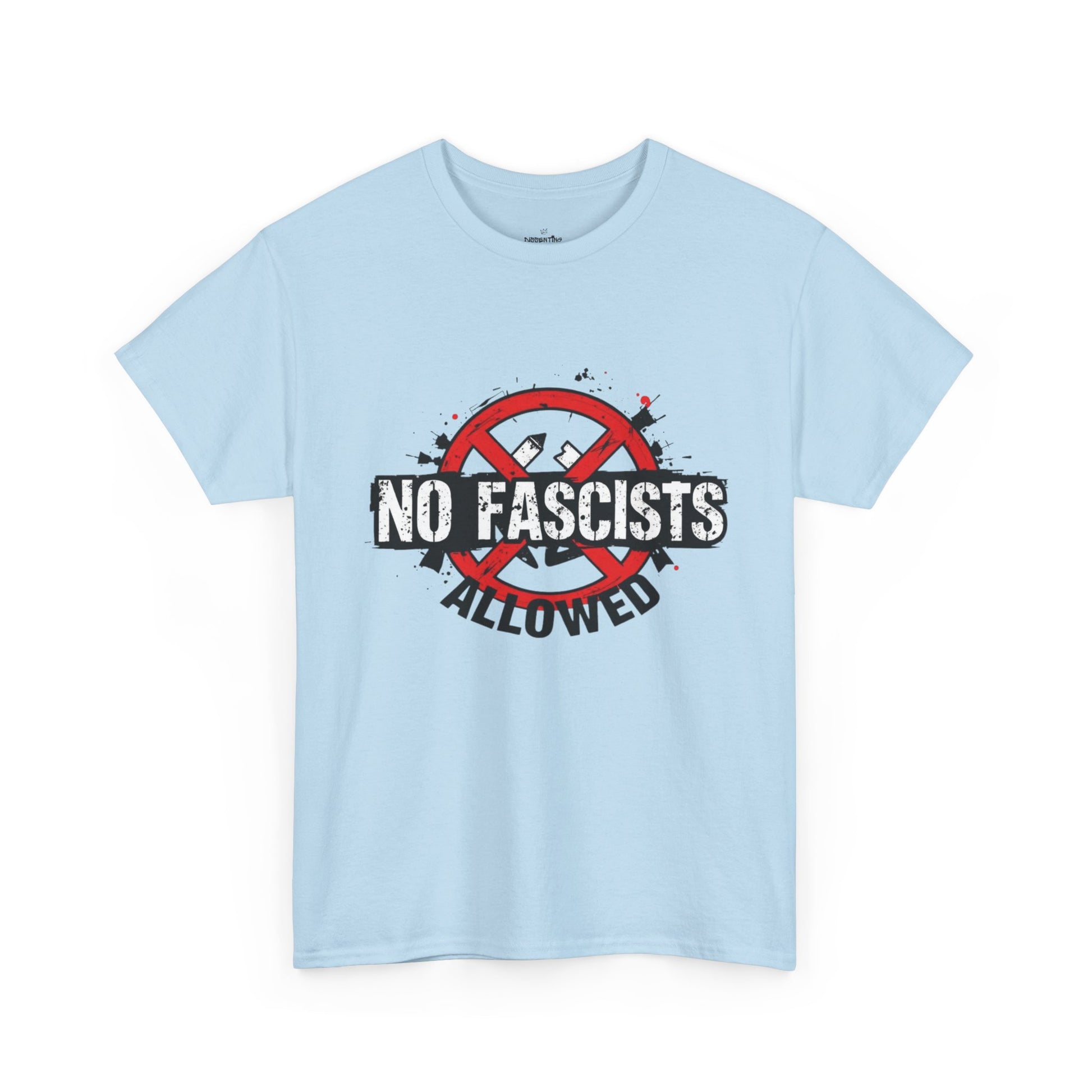 Clear line. Clear message. The No Fascists Allowed tee is a bright warning and a bold boundary, built for everyday wear. Soft enough for the couch, loud enough for the cause - because some ideas don't deserve a platform. - Soft ringspun cotton for all-day comfort - Unisex fit with classic crew neckline - Durable print that stays sharp through washes - Designed by Dissenting Design Co. to make the message unmistakable.
