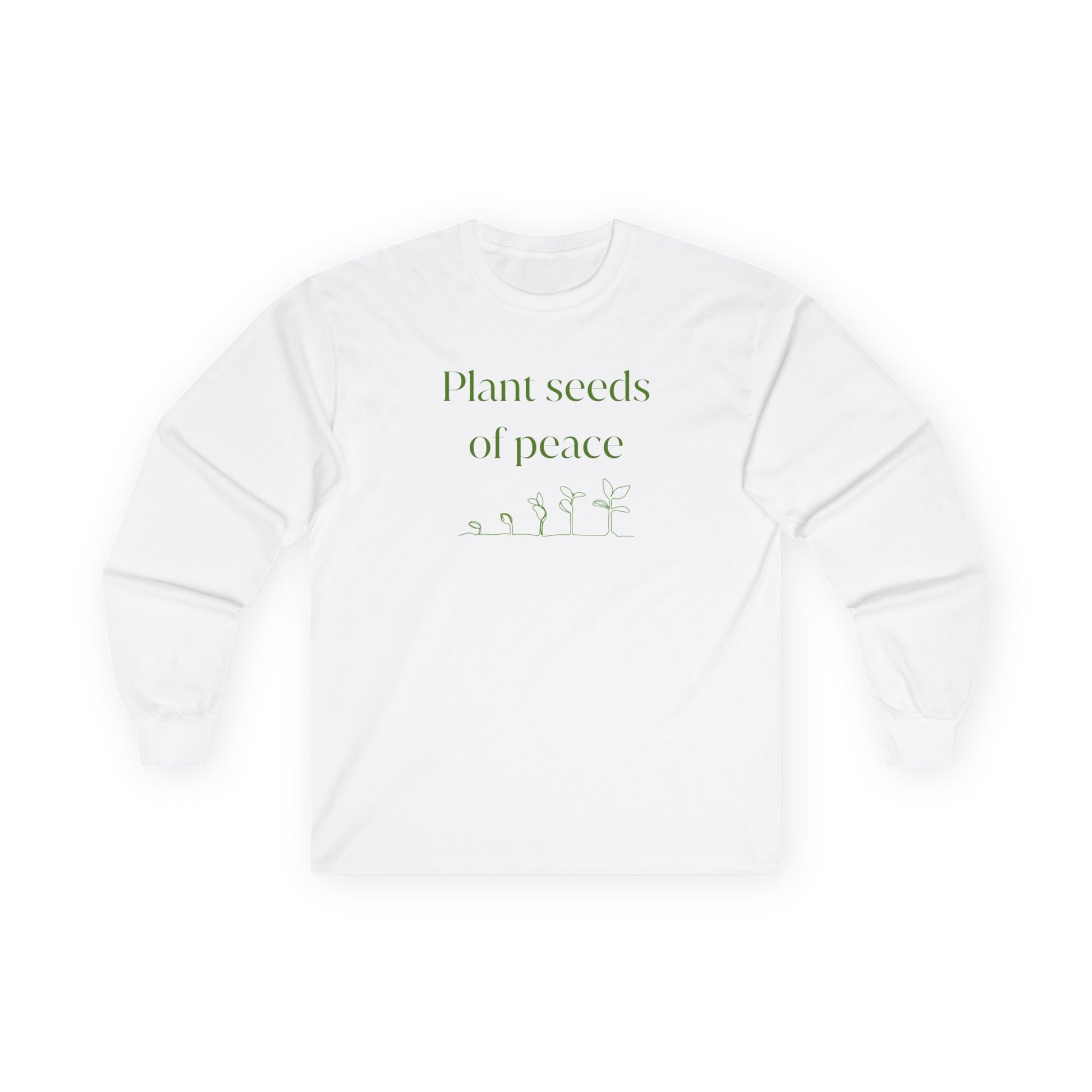 Plant Seeds of Peace Long Sleeve Tee, Unisex Comfort Shirt, Gift for Garden Lovers, Cozy Everyday Wear, Environmental Awareness Apparel