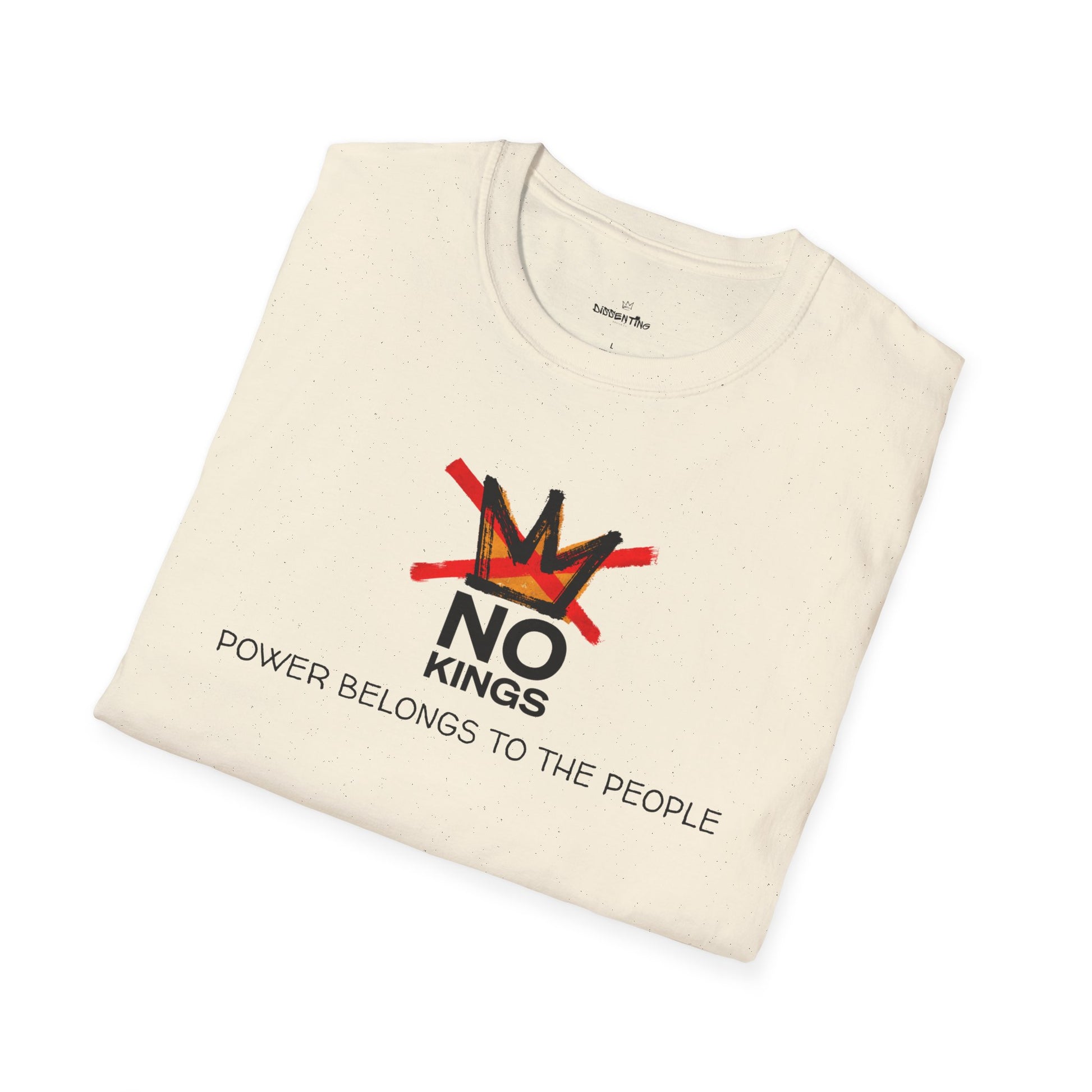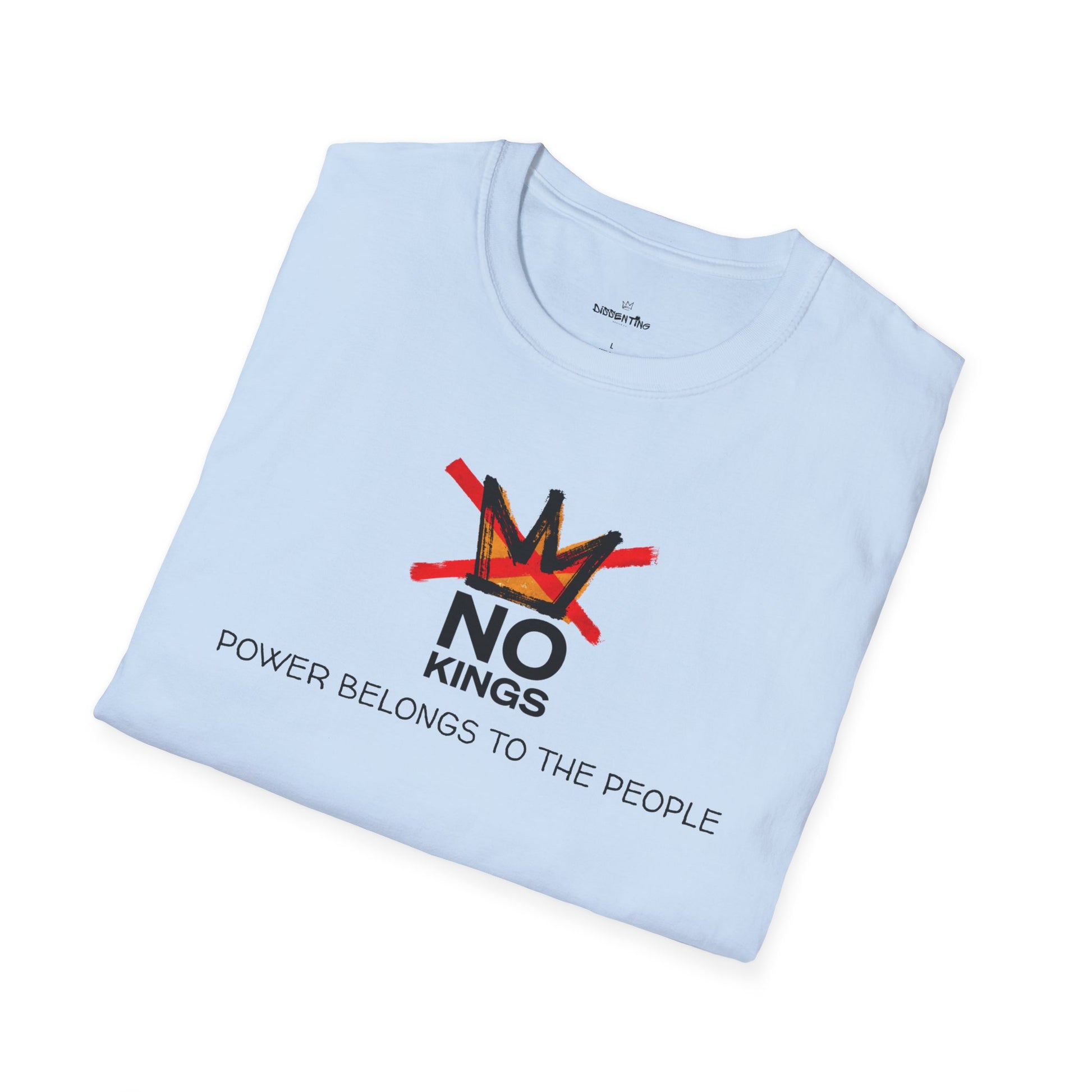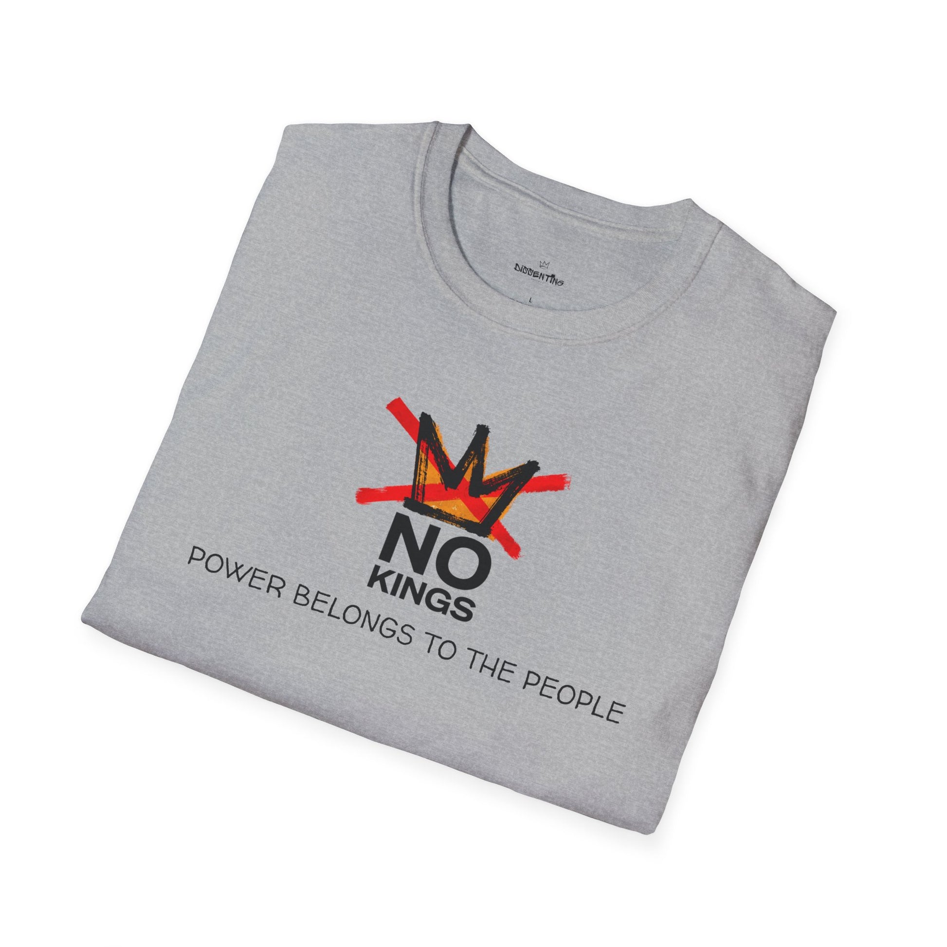 A clear reminder that power belongs with the people - not the crown. The No Kings protest tee combines a simple, striking design with everyday comfort. Soft, breathable, and made to move with you from the march to the weekend. - 100% ringspun cotton for a smooth, soft feel - Unisex fit with a classic silhouette - Durable print that stays bold wash after wash - Designed by Dissenting Design Co. for those who still believe in democracy over domination.