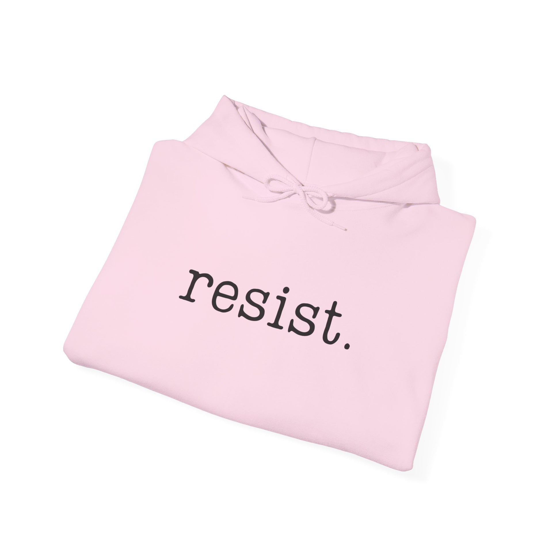 Pull on conviction. The Resist hoodie wraps soft, heavyweight comfort around a clear message that belongs in every season. Built for marches, meet‑ups, and everyday life, it keeps you warm while you keep pushing forward. - Cozy fleece interior for warmth and durability - Unisex fit with adjustable drawstring hood and kangaroo pocket - Clean, bold RESIST print that stands up to wear - Designed by Dissenting Design Co. for everyday organizers and allies