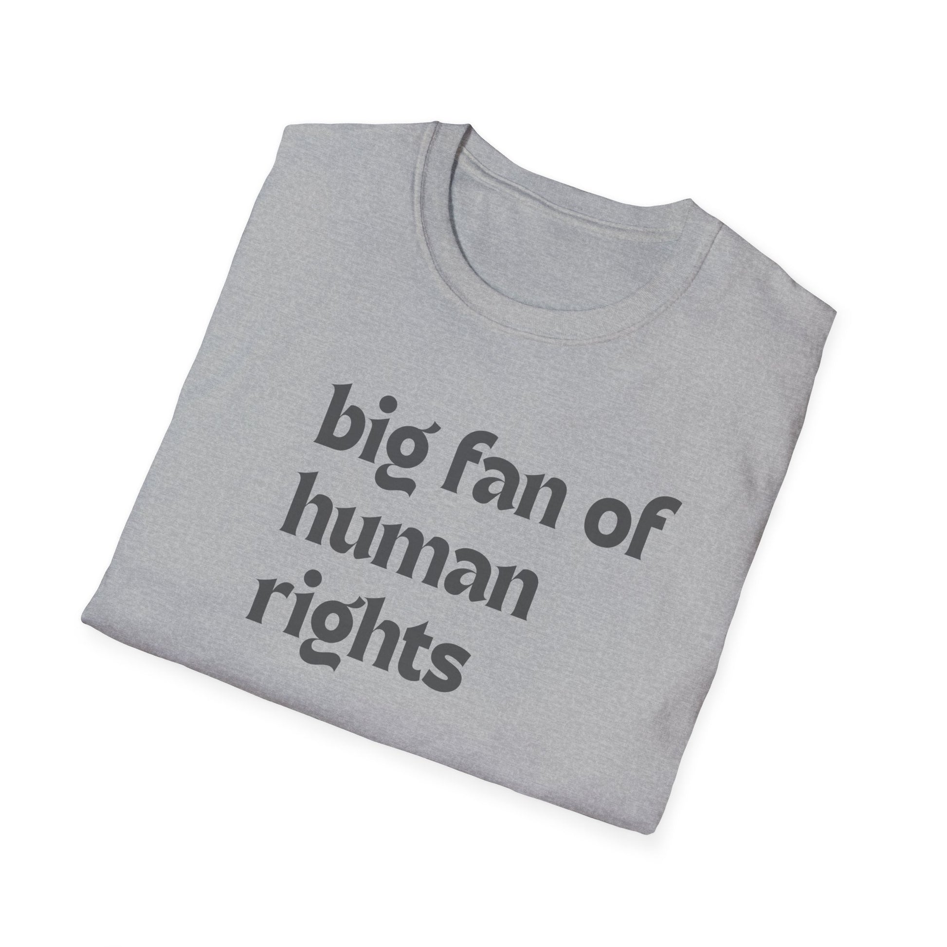 Show your values loud and clear with our “Big Fan of Human Rights” tee. Printed on a classic, comfortable Gildan shirt, this design makes a bold statement that never goes out of style. Whether you’re marching, organizing, or just running errands, it’s the perfect way to wear your dissent on your sleeve (literally).