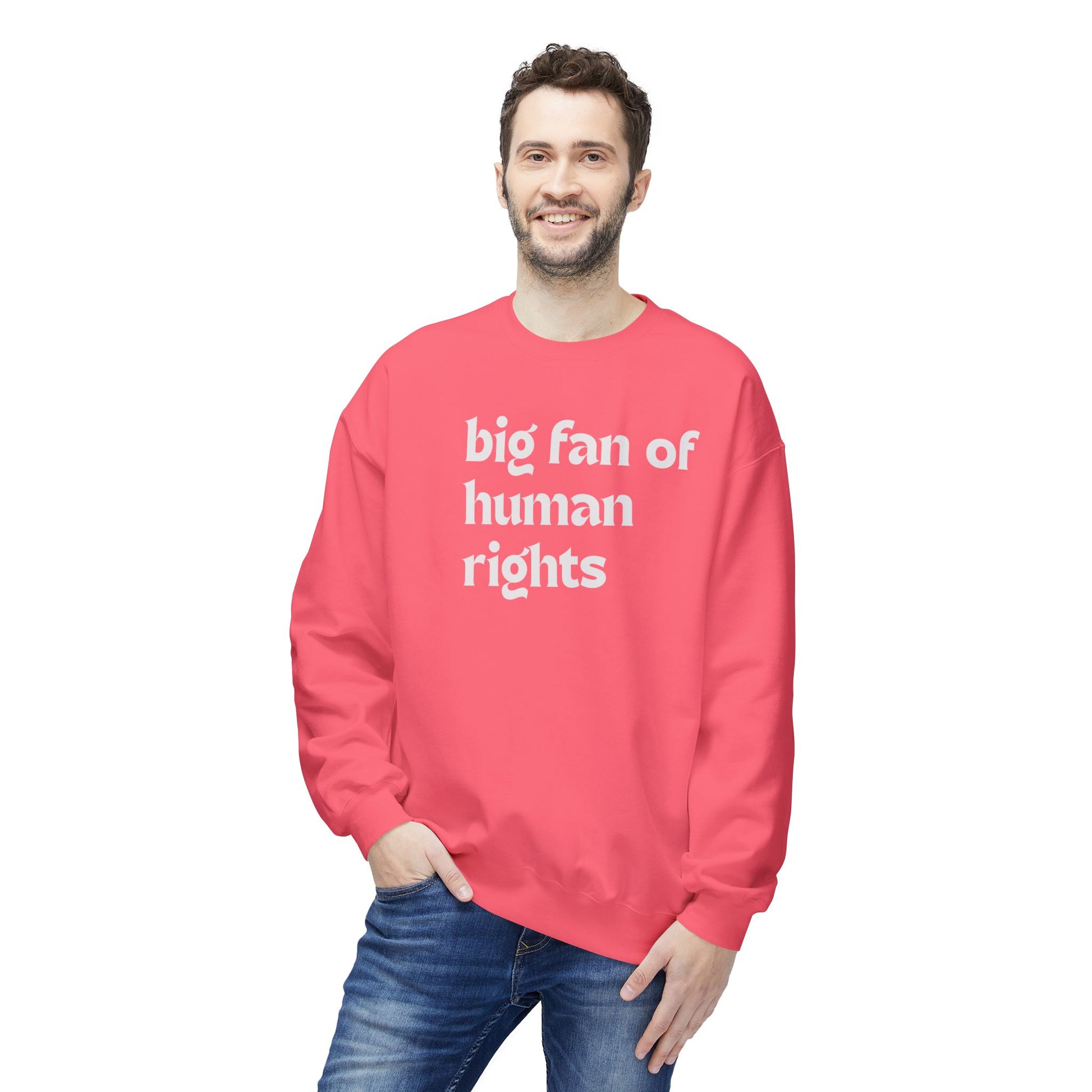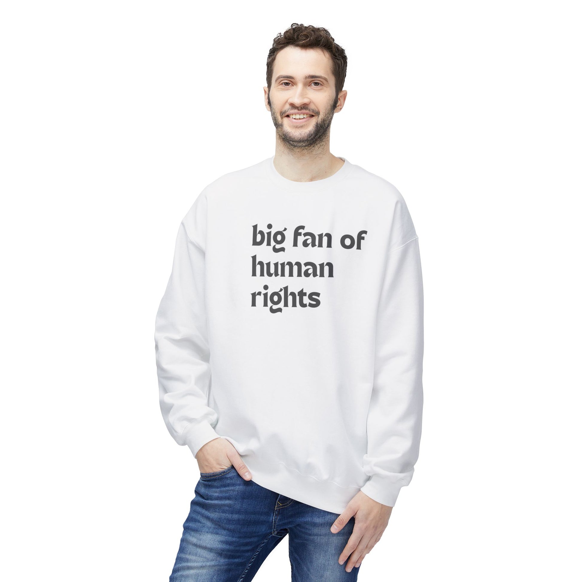 Unisex Fleece Crewneck Sweatshirt - Big Fan of Human Rights, Social Justice Apparel, Statement Wear, Gift for Activists, Cozy Casual Sweater